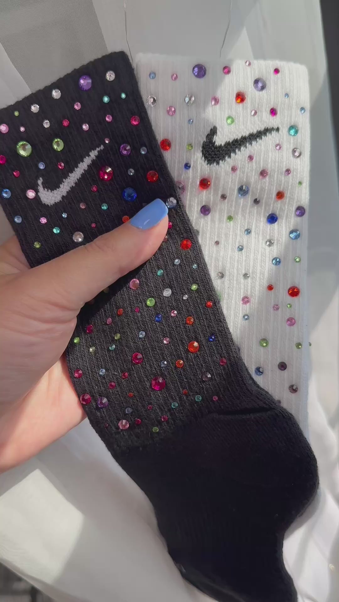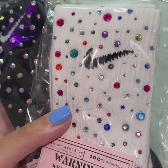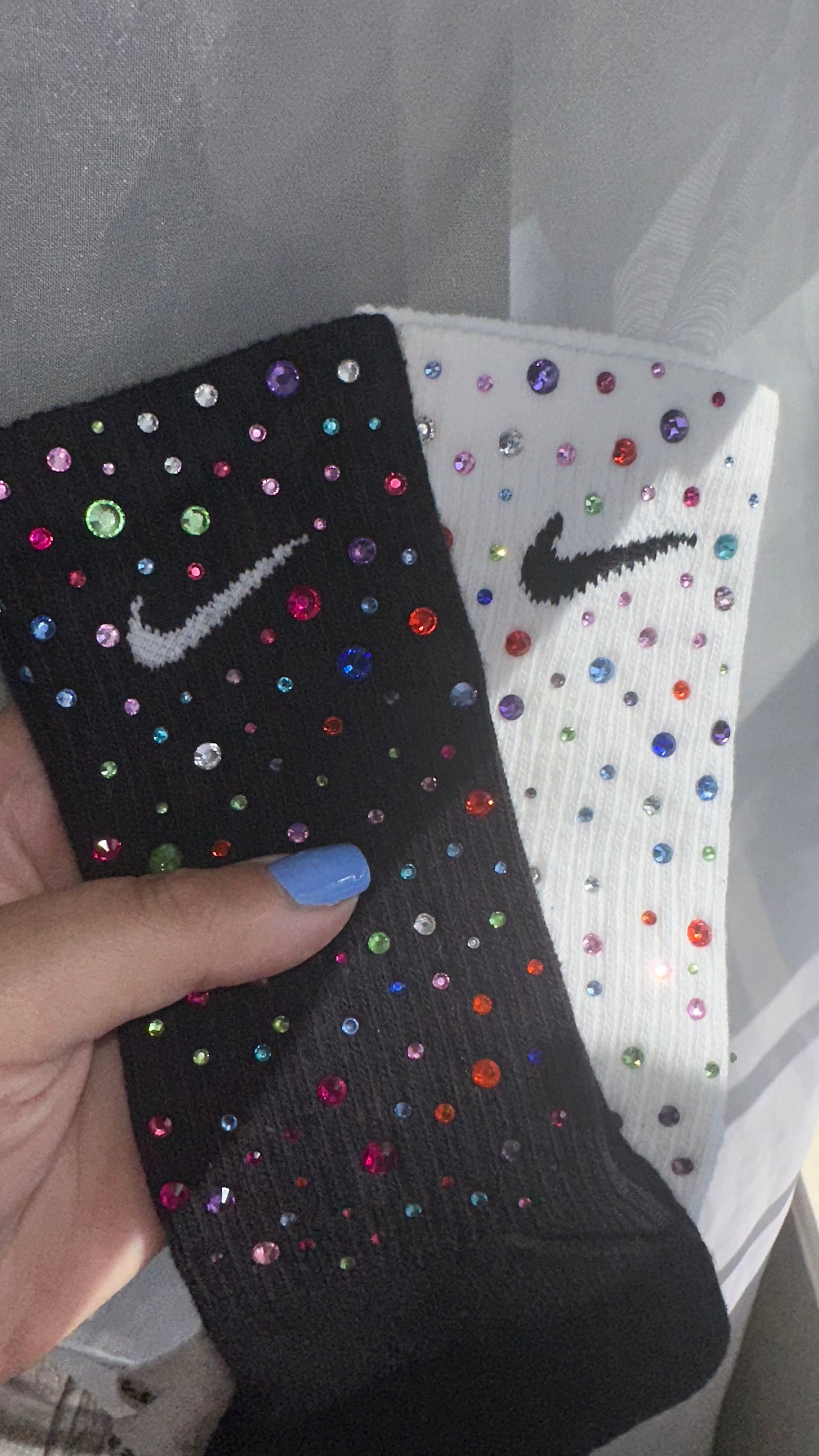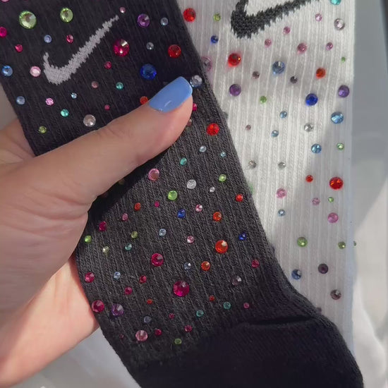 WHITE OR BLACK MULTI COLOR FULLY RHINESTONE DRI FIT SOCK